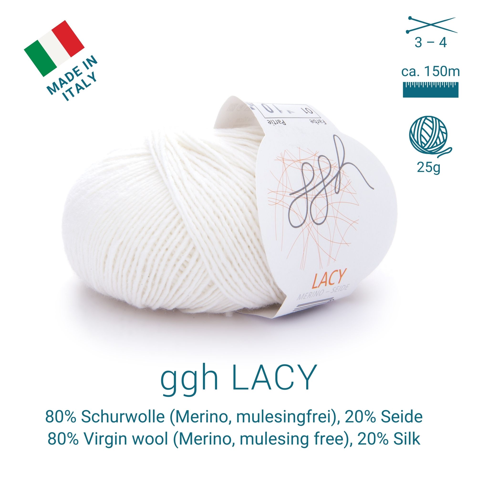 Ob für zarte Lace-Muster, leichte Pullover oder elegante Accessoires, “ggh Lacy” bietet Strickbegeisterten die Möglichkeit, mit einer außergewöhnlichen Garnqualität zu arbeiten, die jedes Projekt zu einem Kunstwerk werden lässt. Es ist die ideale Wahl für diejenigen, die in ihren Handarbeiten einen Ausdruck von Luxus und Qualität suchen, ohne dabei Kompromisse bei der Funktionalität und dem Tragekomfort einzugehen.